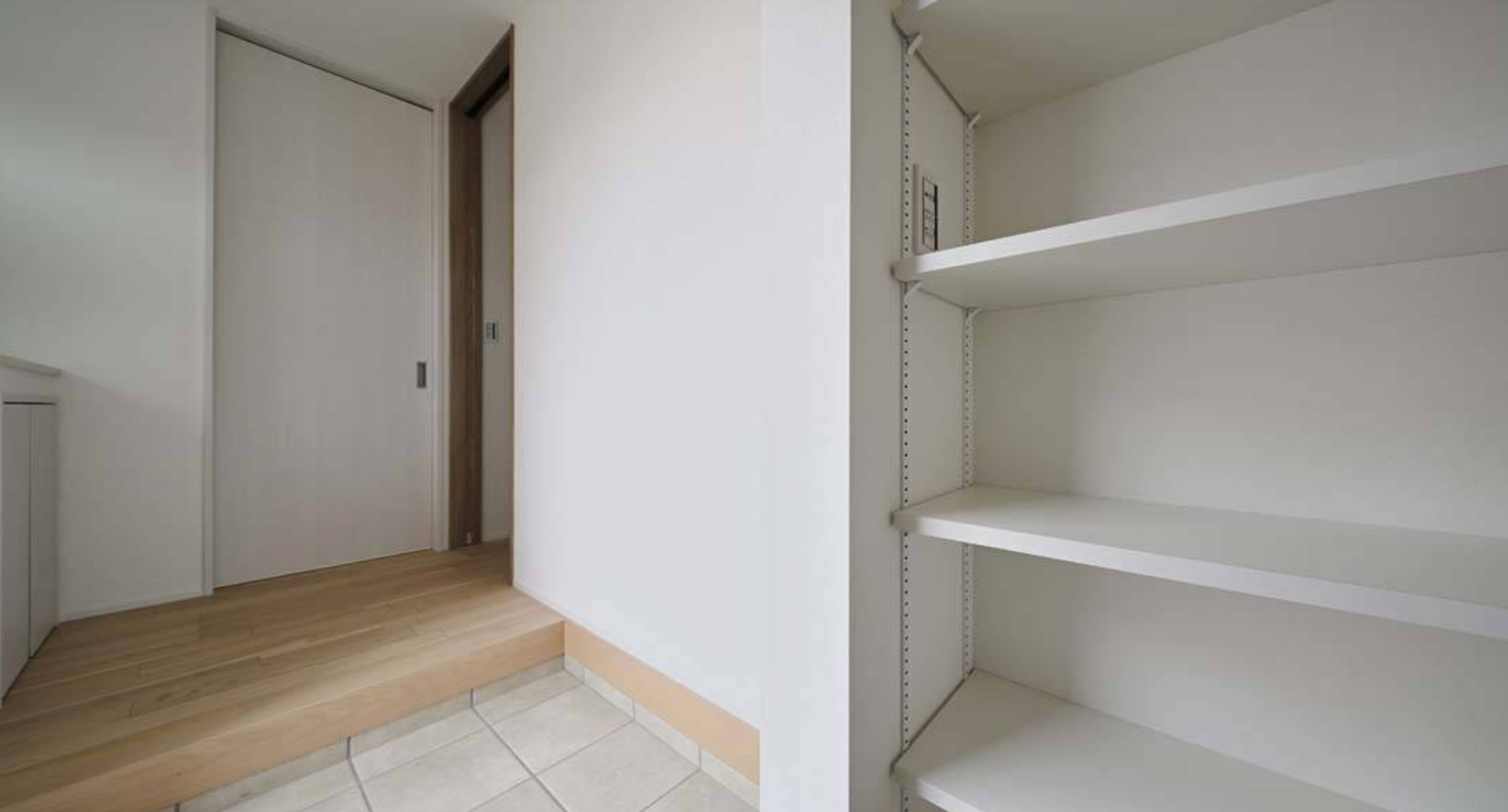 玄関は40坪とは思えないほど、広々として清潔感のある空間に。収納も豊富なので、雑多になりがちな玄関も綺麗な状態を保てそう。広い土地でなくても、希望をぎゅっと詰め込める家に仕上がりました。
