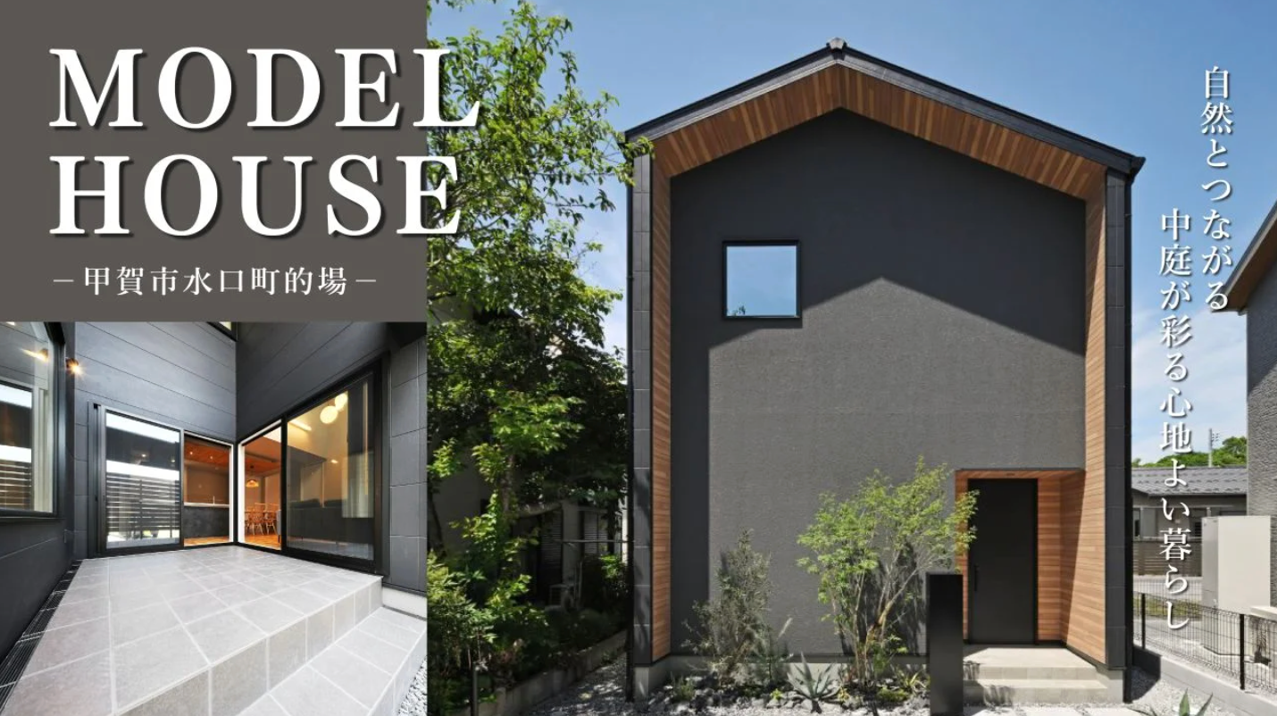 甲賀市水口町的場に、コの字型の中庭が特徴のモデルハウスが新登場。中庭を囲む三方向から中庭の様子を確認できるため、お子さまの遊び場としても最適です。休日には家族みんなでBBQを楽しむなど、多目的に活用できます。リビングは吹き抜け構造で、中庭に面した窓からたっぷりと光が差し込み、明るく開放感のあるLDKが広がります。ぜひこの機会にご見学ください!
