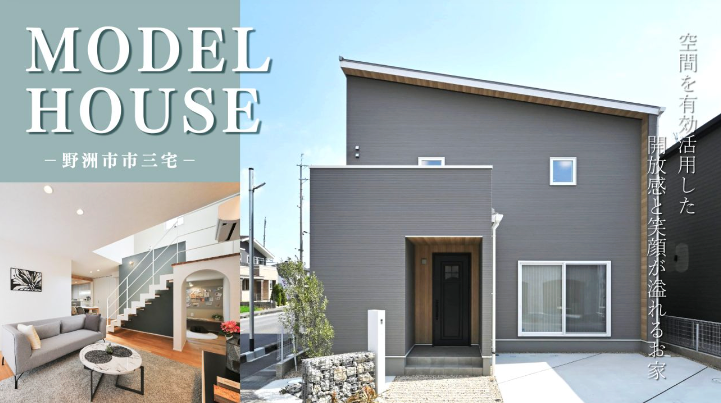 野洲駅より徒歩約10分という好立地に、空間を有効活用したモデルハウスが新登場。1階リビングには、さまざまな用途に使えるアーチ開口が特徴のヌックを設けました。2階へと続く階段にはスキップフロアがあり、プロジェクターを投影すればシアタールームとしても楽しめます。こだわりを詰めたお洒落なモデルハウスです。ぜひこの機会にご見学ください!